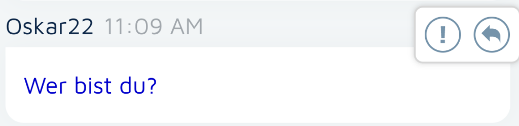 Durch Klick auf das Ausrufezeichen kann man den Beitrag melden. Dies macht Sinn, wenn vorher vereinbart worden ist, ob der Chat moderiert werden soll.